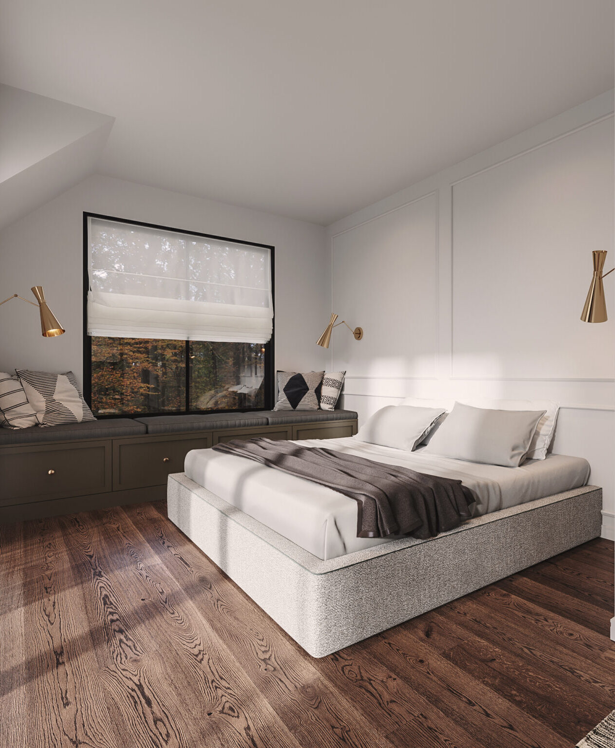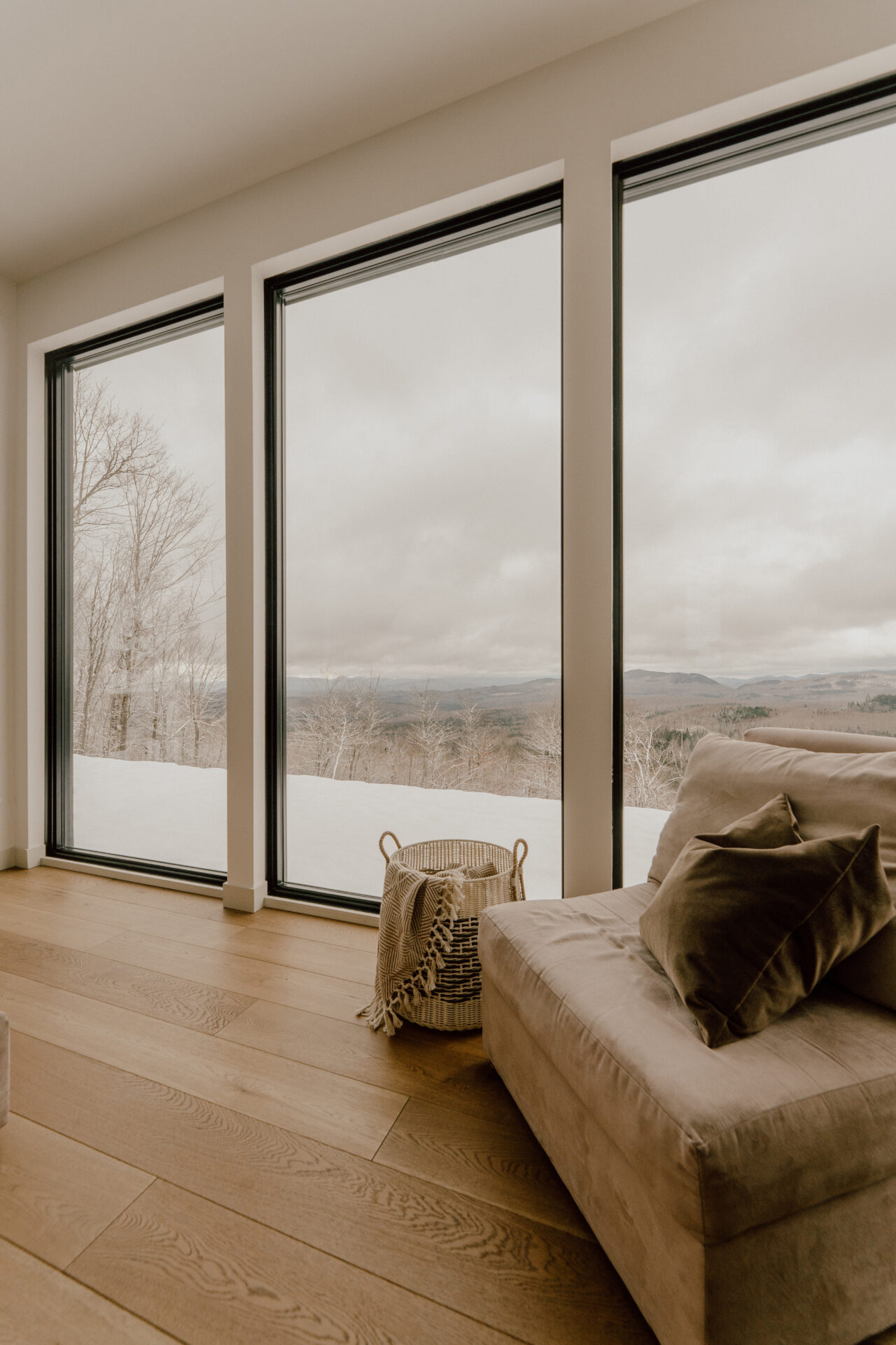 Seeing as this would be built on a sloped lot, we took advantage of this to create a living room a little lower in order to achieve more height, with larger windows.
