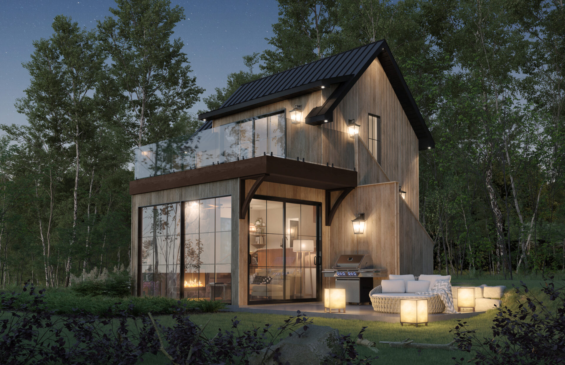 “A unique 4 people tiny cabin, European style, using architecture to help the outdoor environment stand out.” Those were the key words that dictated the design of this project.