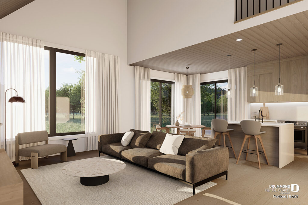 The PORTLAND house plan (#6127) stands out with its clean Scandinavian style and naturally warm character. From the start, its balanced architecture blends beauty, functionality, and durable materials for modern living.
