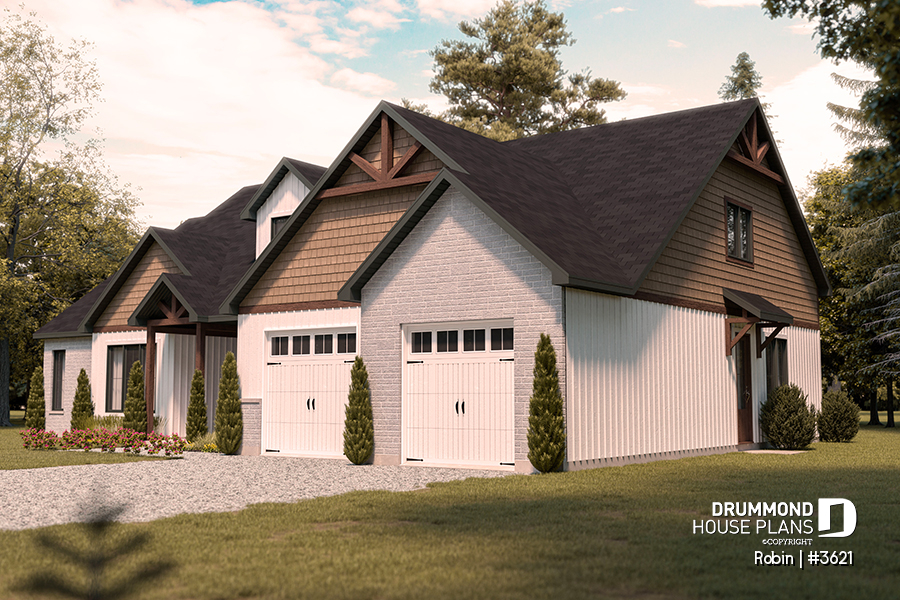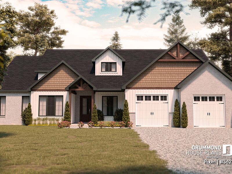 The ROBIN, a contemporary ranch home, with garage (#3621) is a smart choice if you’re looking for a bright, functional, and adaptable modern ranch house plan.